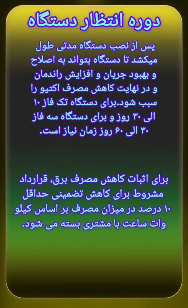 8- کاهش هارمونی موجود در سیستم؛ هارمونی ها به تجهیزات برقی شما آسیب می رسانند. لذا با استفاده از این دستگاه و کاهش هارمونی ها، عمر لوازم برقی شما افزایش یافته و هزینه تعمیرات و نگهداری کاهش می یابد.